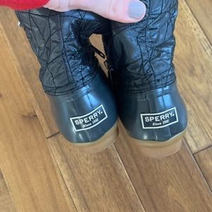 Waterproof saltwater nylon/rubber quilted duck boot. Micro fleece lining. 1” heel.