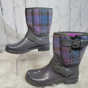 Sperry Rain Boots Womens 6 Plaid Fabric Rubber Waterproof Outdoor Preppy Cute