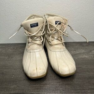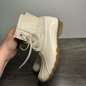 Sperry Saltwater Boot Ivory w Gold Girls Sz 4