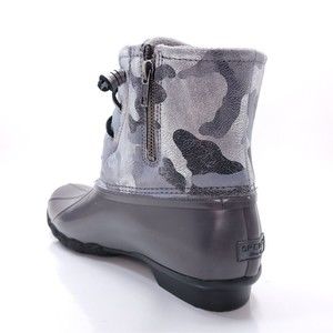 Sperry Saltwater Duck Boots Metallic Camo Silver Rain Snow Womens Size 9.5