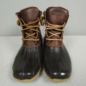 Sperry Saltwater Duck Boots Women Size 7.5 Brown Leather Rubber Waterproof