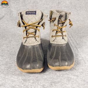 Sperry Gray Black Saltwater Emboss Duck Boots Women's 9