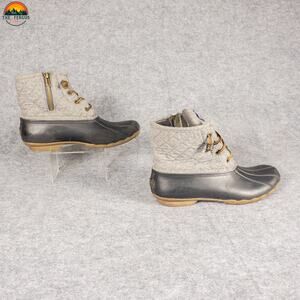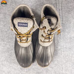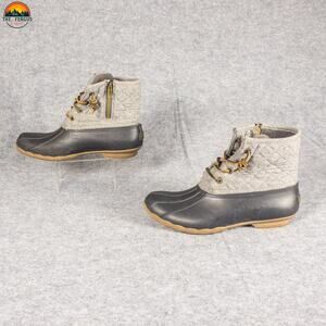 Sperry Saltwater Emboss Ankle Duck Boots Gray Black Waterproof Women's Size 9