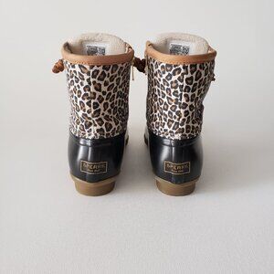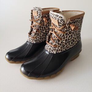 Sperry Saltwater Leopard Animal Print Duck Boots Size 8
