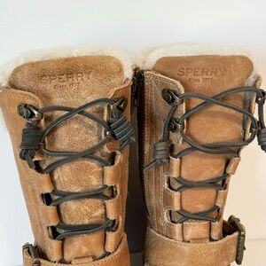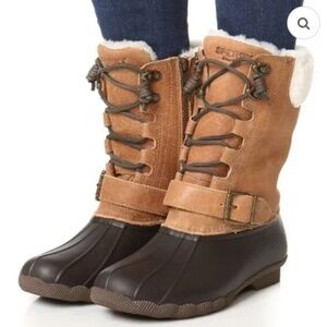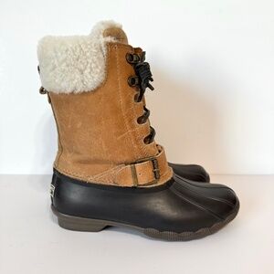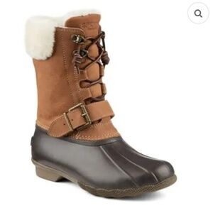 Sperry Saltwater Misty Women's Waterproof Rubber Duck Boots Tan Suede Fur Lined