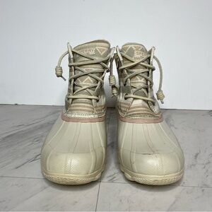 Sperry Saltwater Off White Printed Duck Boots 6 1/2 M