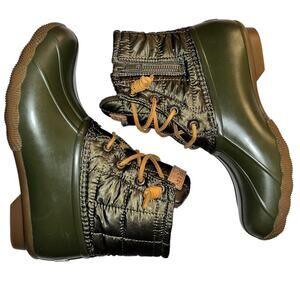 Sperry Saltwater Quilted Duck Boots Olive Green Waterproof Rubber – Women’s 7M