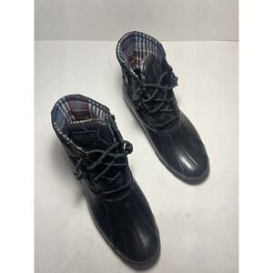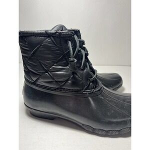 Sperry Saltwater Quilted Duck Rain Boots 9.5M Black Lace up Winter