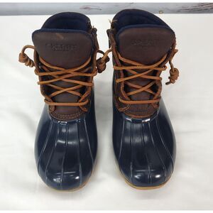 Sperry Saltwater STS91175 Brown Navy Blue Rain Duck Boots Leather Women's 5.5