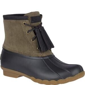 STS84364 Sperry Women's Saltwater Tassel Corduroy Duck Boots - Olive
