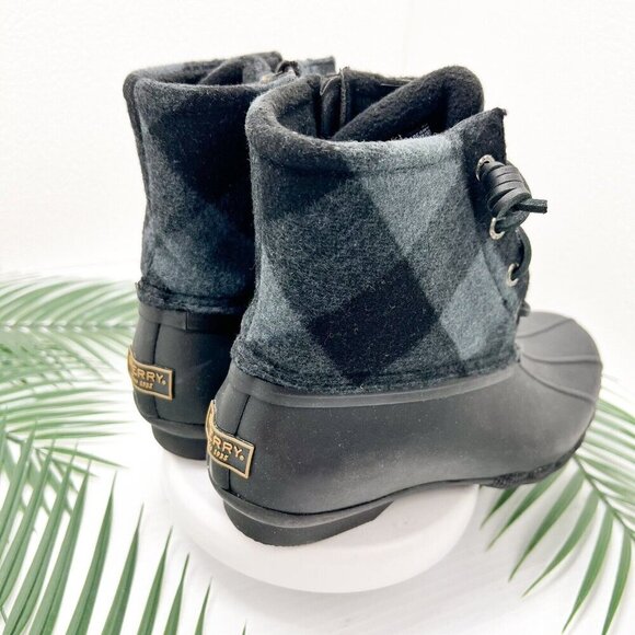 Sperry Saltwater Women’s Check Black Side Zip Lace UP Duck Boots Size 6 NWOB