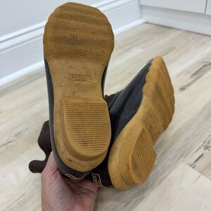 Sperry Saltwater Womens Duck Boot Tan Dark Brown Sz 11 good preowned condition perfect boot for rainy weather college football games hunting etc versatile