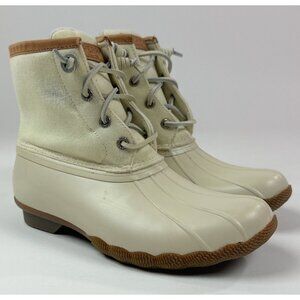 Sperry Saltwater Wool Rubber Womens 7.5 Ivory White Duck Rain Boots STS87954