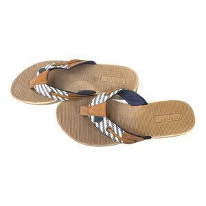 Sperry Seafish Mariner Top Sider Leather Flip Flops Nautical Striped Sandals 6.5