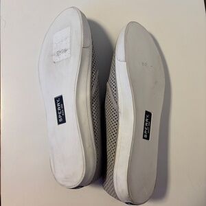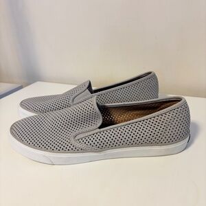 Sperry Seaside Perf Leather Slip On Memory Foam Deck Shoes Sneakers in Grey and Womens US Size 12. Gently used and in excellent condition.