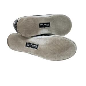 Sperry Sequin Animal Print Boat Shoes Size6 Patent Leather Lace up Black White