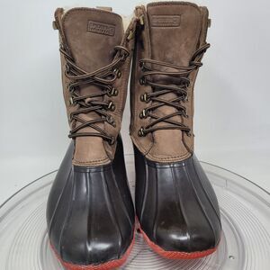 Sperry Shearwater Boots Womens 11 M Brown Leather REAL Shearling Duck Rain Snow