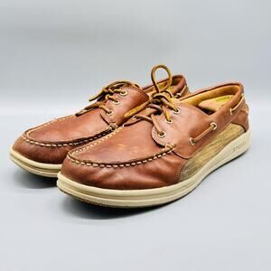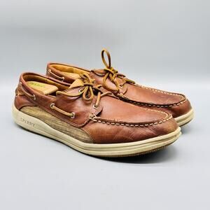 Sperry Shoes Mens 13 Brown Leather Boat Top Sider Billfish Mesh 3 Eye Slip On