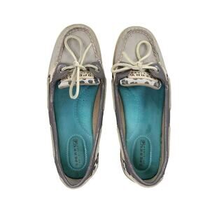 Used Sperry Shoes Womens 6.5 Moc Loafer Slip On Boat Top Sider Leather Leopard Casual