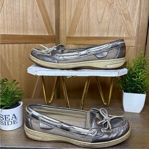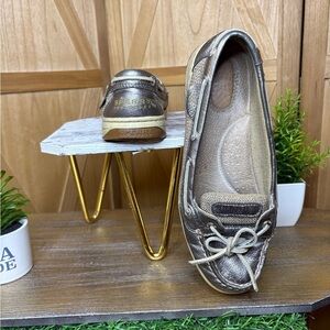 Sperry Silver Flats with Moc-Toe and Rawhide Laces Women’s Size 8M