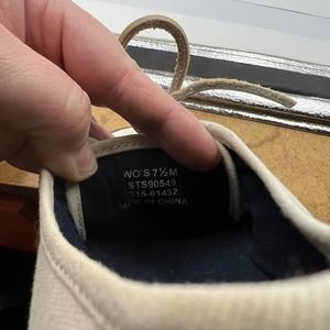 Sperry sneakers lace up boat shoe loafer in cream/ light tan. Women's size 7.5 m in good condition with some light wear as pictured.