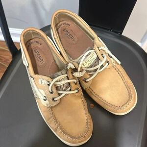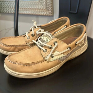 Sperry Songfish Leather Boat Shoe in Linen Oat size 7.5 EUC