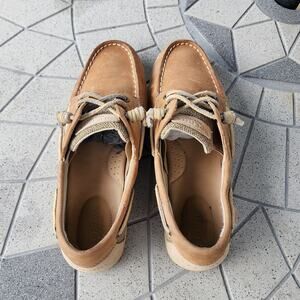 Preowned: Sperry Top-Sider "Songfish" Linen Oat Premium Leather Boat Shoes