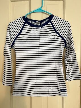 Striped white and navy rashguard from Sperry Topsider.
