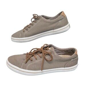 The Sperry Striper II Linen Shoes in men's size 11.5 are casual lace-up sneakers with . Leather Laces and Taupe colorway.