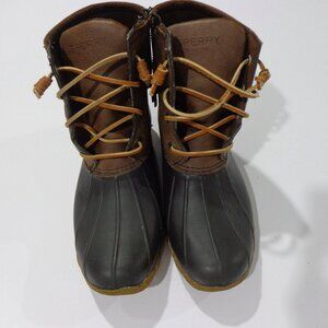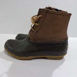 Sperry Sweetwater Women's Waterproof Duck Boots Brown Black Side Zip Size 6