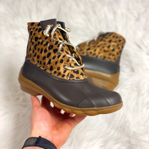 Sperry Syren Gulf Womens Ankle Duck Boots Brown Cheetah STS86757 NEW Multi Sz