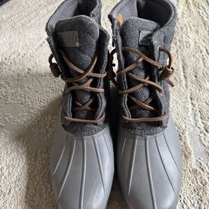 Sperry Syren Duck Boots gray quilted waterproof lace up wool blend mid-height boot round toe