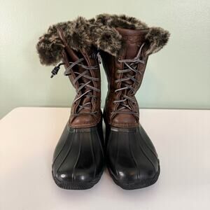 Sperry Tall Boots girls 4 Fur Snow Waterproof Leather Lace Up Zip Pull On Brown