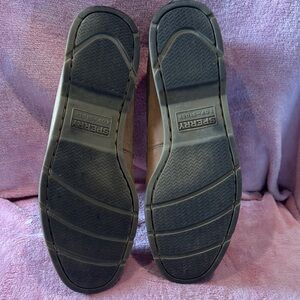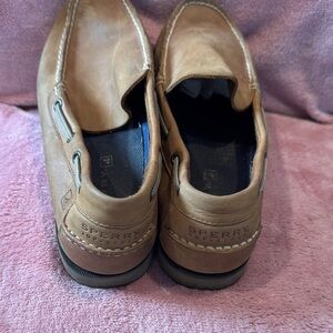 Sleek tan leather loafers by Sperry. Easy slip-on design. Ideal for casual wear.