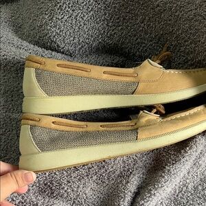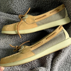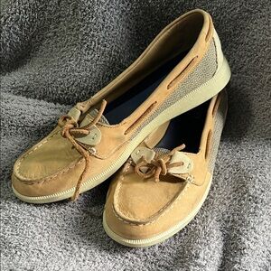 Classic Sperry moccasins in tan. Comfortable and stylish. Ideal for everyday wear.