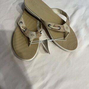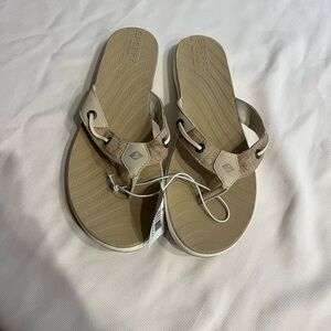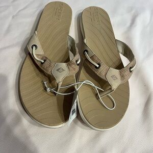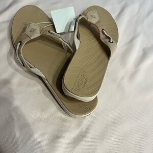 Experience effortless style with Sperry's tan sandals, featuring a chic crisscross strap design and a comfortable flat sole. These minimalist slip-ons are perfect for casual summer outings, offering a versatile look that pairs well with any outfit.