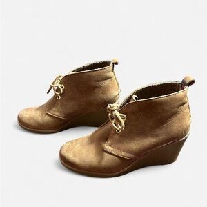 Chic tan wedges with lace-up design. Ideal for casual outings. Comfortable and stylish. Gently used.