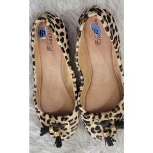 Sperry Top Bliss Leopard Leather Ballet Flats Sz 6.5