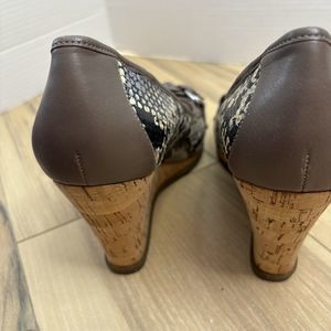 Sperry Top Sider 9 Snake Print Wedge Leather Peep Toe Heel Career Size 9.5
