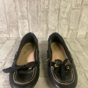 Sperry Top Sider Black slip on flats with lace closure. Size 10M