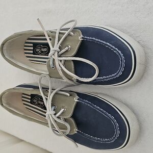 Sperry Top Sider Boat Shoe Lace Ups Blue & Gray with White Soles Size 10M EUC
