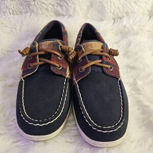 Sperry Top Sider Boat Shoes Leather Multicolor Plaid Slip On Women 7M Fisherman