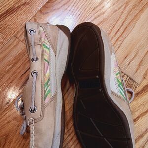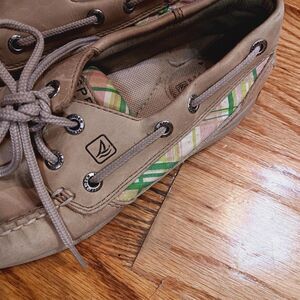 Sperry Top Sider Boat Shoes‎ Womens Size 6M Tan Leather Multicolor Plaid Loafers