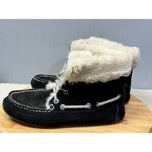 Sperry Top Sider Boots Womens 7M MacKenzie Faux Fur Black Moccasin Ankle Bootie