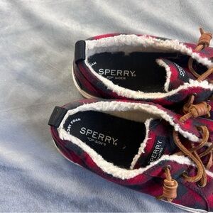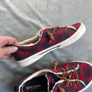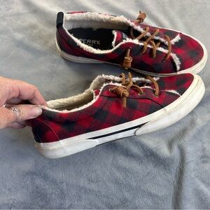 Sperry Top Sider Buffalo Plaid Faux Fur Sherpa slip on women's size 7