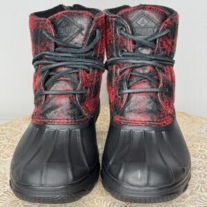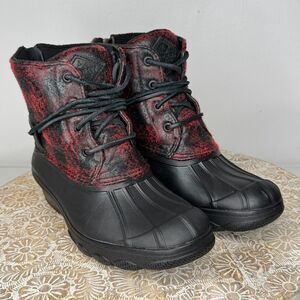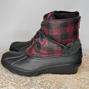 Sperry Top Sider Saltwater Wedge Duck Boots Womens Sz 5.5 Black Red Plaid Wool