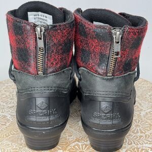 Sperry Top Sider Duck Boots Womens Sz 5.5 Black Red Plaid Wool Saltwater Wedge