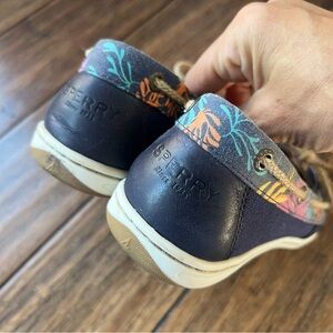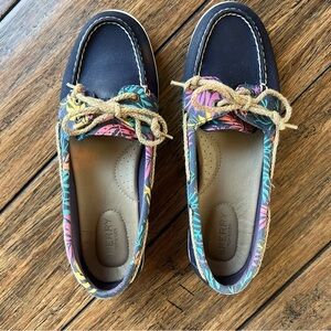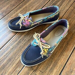 Sperry Top Sider Firefish Seaweed Boat Shoes Leather Tropical 8 Navy Blue Womens