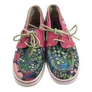 Sperry Top Sider Floral Print Cavas Bahama Boat Shoes Size 6 Womens Pink Green