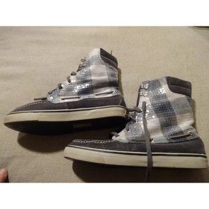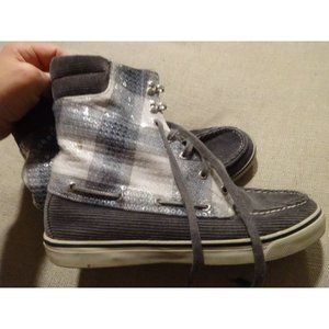 Sperry Top Sider Fold Down Gray Corduroy Sequin Wool High Tops Size 9.5 M